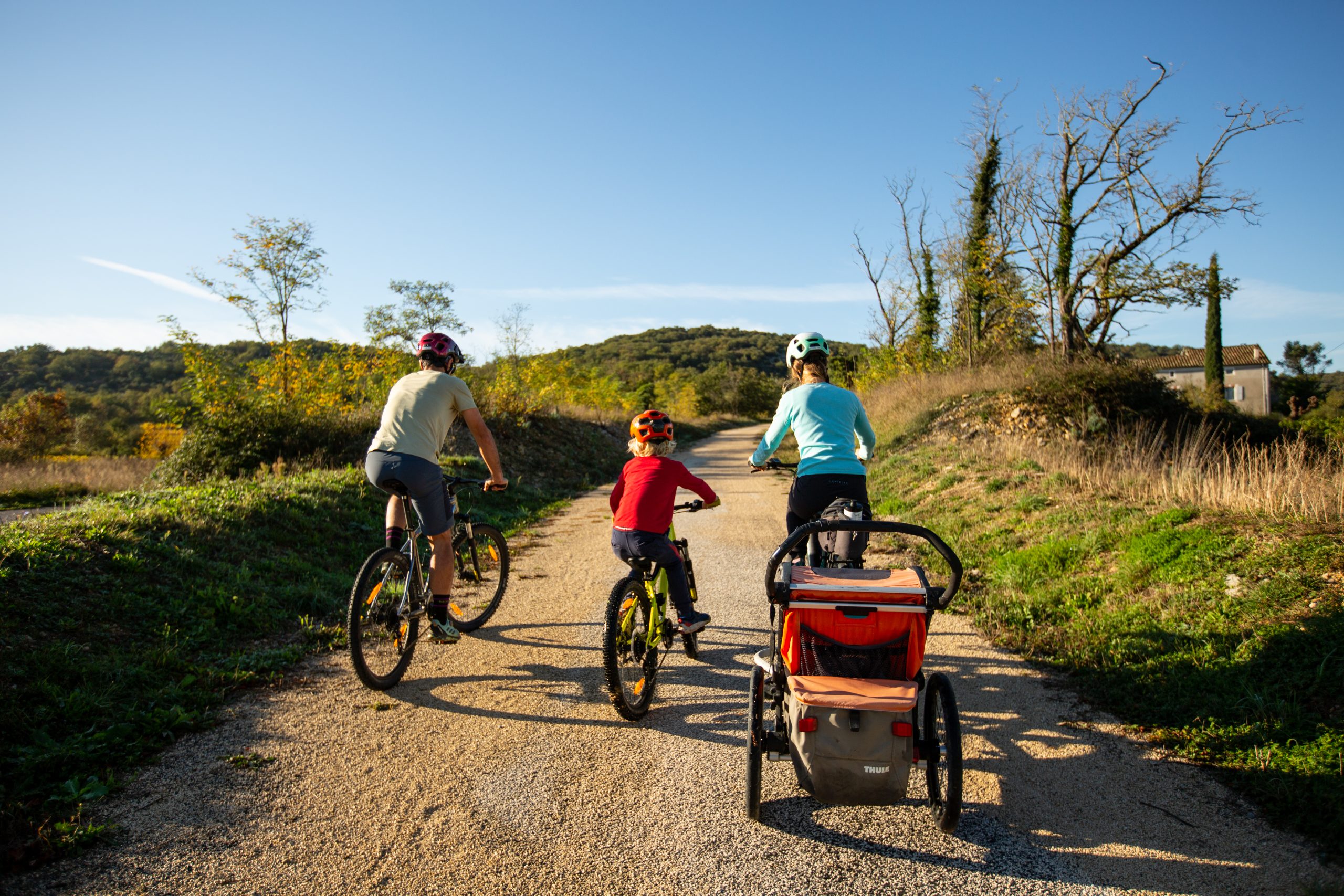 C’est un parcours sans voiture, où l’on pédale tranquillement au cœur d’une nature changeante, entre garrigue, vignes, patrimoine ferroviaire et points de vue inattendus.